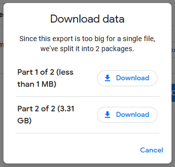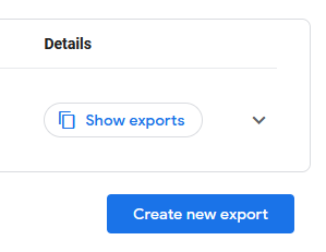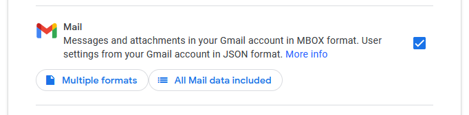 The first step in the process is to create a MBOX file containing all your email. It will only take a minute to start the export, but it may take an hour before you are able to download the file.