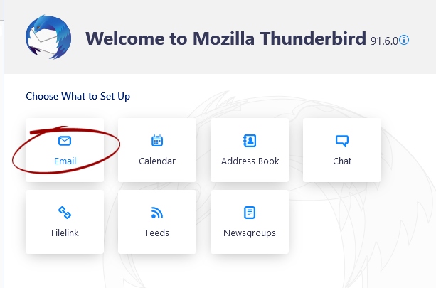If this is a new installation of Thunderbird, you won't see this page – please go straight to the next step, otherwise choose "Email"